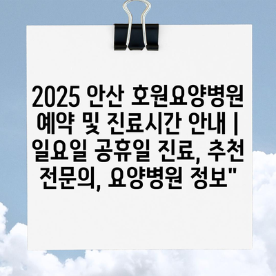 2025 안산 호원요양병원 예약 및 진료시간 공지 | 일요일 공휴일 진료, 추천 전연락, 요양병원 정보에 대해 자주 묻는 질문 TOP 5