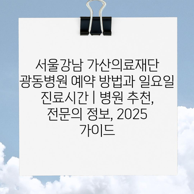 서울강남 가산의료재단 광동병원 예약 방법과 일요일 진료시간 | 병원 추천, 전문의 정보, 2025 가이드