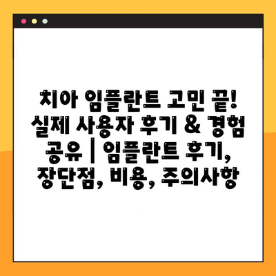 치아 임플란트 고민 끝! 실제 사용자 후기 & 경험 공유 | 임플란트 후기, 장단점, 비용, 주의사항