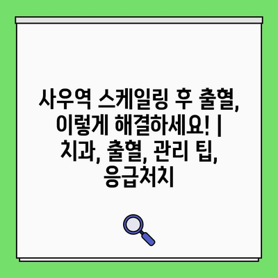 사우역 스케일링 후 출혈, 이렇게 해결하세요! | 치과, 출혈, 관리 팁, 응급처치