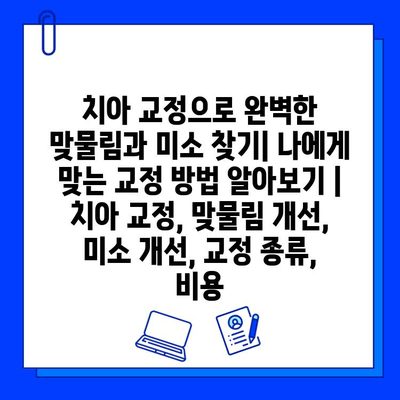 치아 교정으로 완벽한 맞물림과 미소 찾기| 나에게 맞는 교정 방법 알아보기 | 치아 교정, 맞물림 개선, 미소 개선, 교정 종류, 비용