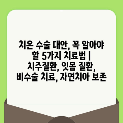 치은 수술 대안, 꼭 알아야 할 5가지 치료법 | 치주질환, 잇몸 질환, 비수술 치료, 자연치아 보존