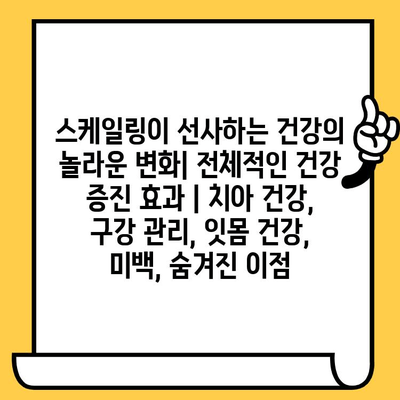 사우역 치과가 알려주는 스케일링 후 출혈, 이렇게 대처하세요! | 스케일링, 출혈, 치과, 관리 팁 건강한 치아를 위해 스케일링은 필수입니다. 하지만 스케일링 후 출혈이 발생하면 불안하고 걱정되는 것은 당연합니다. 걱정하지 마세요! 사우역 치과가 스케일링 후 출혈에 대한 궁금증을 해소하고, 효과적인 대처법을 알려제공합니다. 스케일링 후 출혈은 잇몸이 건강하지 못한 상태를 반영할 수 있습니다. 잇몸 질환은 치주염으로 이어질 … 더 읽기